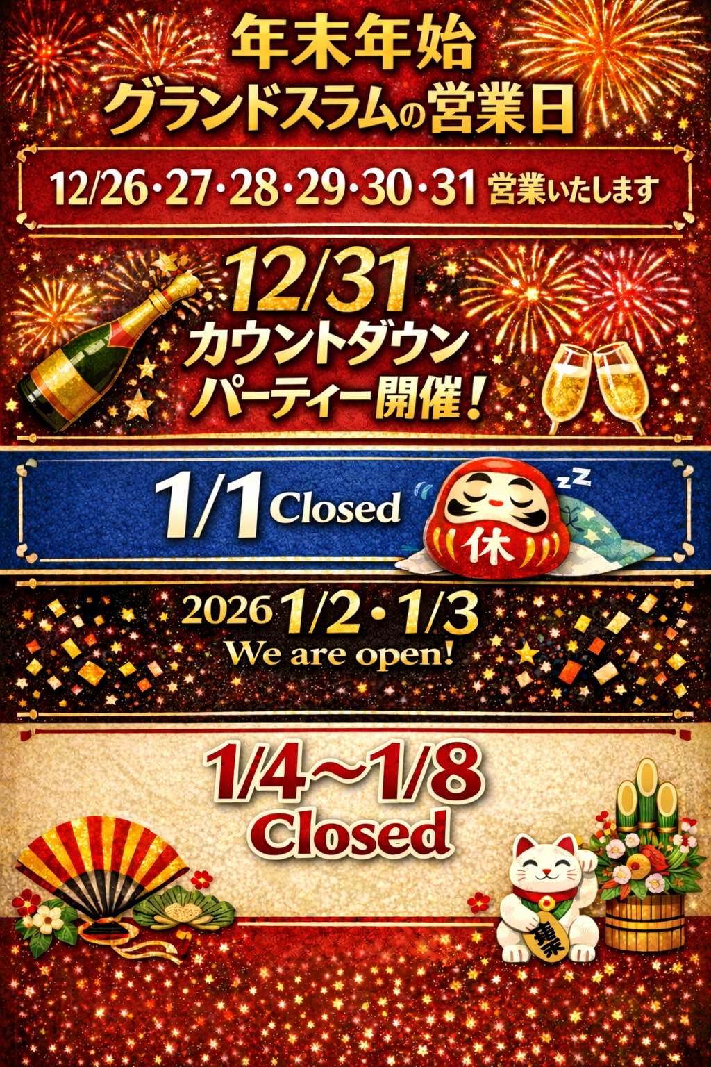 グランドスラムは、これからも皆様と共に素晴らしい時間を過ごし、より一層の盛り上がりと心温まるひとときを提供する場所として更なる飛躍を目指し精進してまいります。